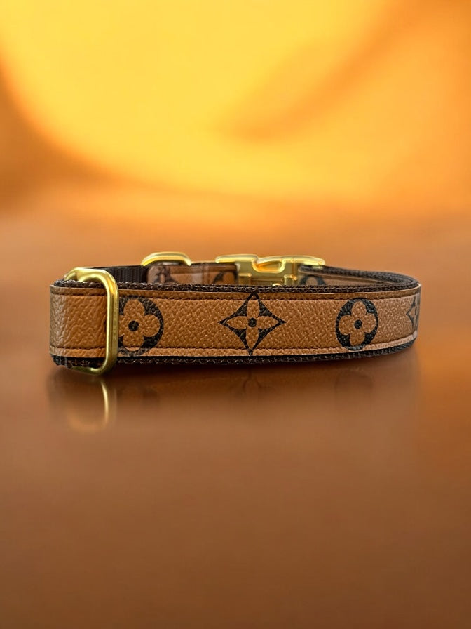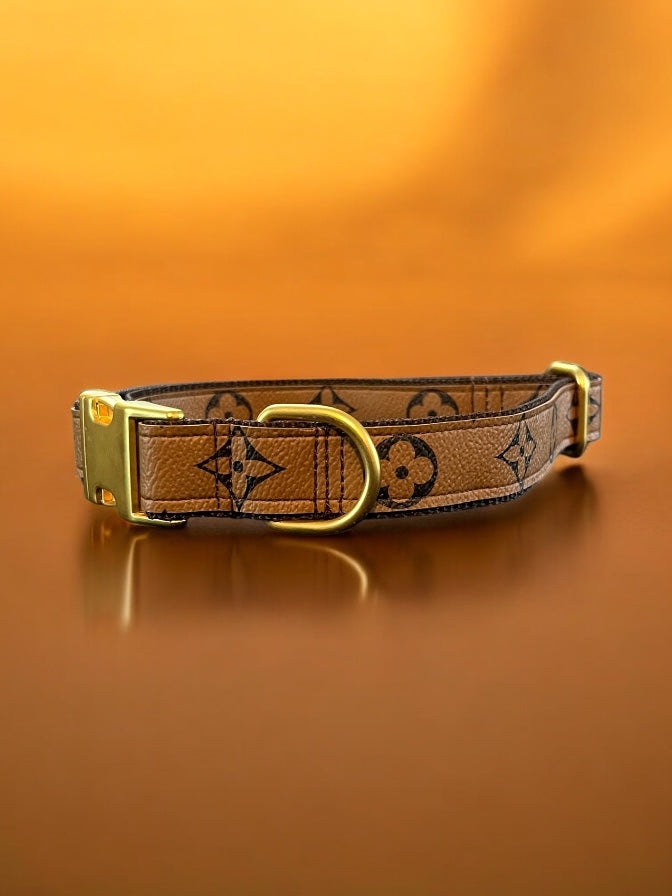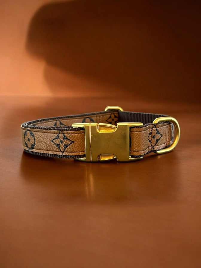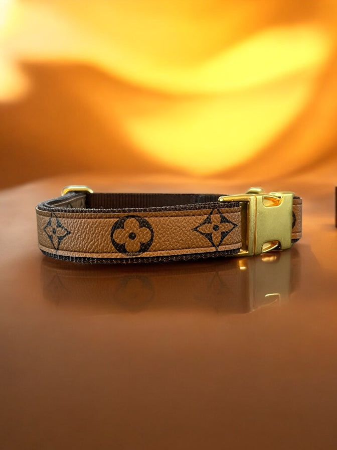 Transform your pet’s daily walk into a fashion statement with the exquisite LV Dog Collar. Made from genuine LV canvas paired with robust brown nylon, this collar is the perfect combination of luxury custom dog collar and practicality for style-conscious pet owners.